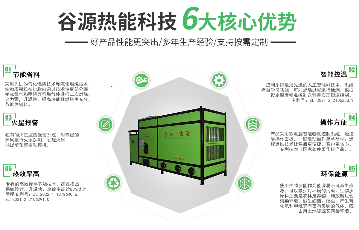 安徽谷源熱能科技有限公司坐落于大別山腳下的紅色革命老區(qū)——六安,是一家專業(yè)從事熱源產(chǎn)品的研發(fā)、生產(chǎn)、銷售、服務于一體的綜合性企業(yè)。 本公司主要生產(chǎn):糧食烘干用生物質(zhì)環(huán)保熱風爐、生物質(zhì)稻殼熱風爐、生物質(zhì)顆粒取暖爐、浴室用生物質(zhì)顆粒爐、涂裝生產(chǎn)線用生物質(zhì)顆粒爐、燃油熱風爐、天然氣熱風爐等熱源產(chǎn)品,公司產(chǎn)品采用微電腦控制,可自動點火,根據(jù)設定溫度自動進料、自動控溫。使用燃料為生物質(zhì)顆粒,屬于可再生資源,相對運行成本低,節(jié)能環(huán)保。 我們以顧客為導向,一直致力于以提高產(chǎn)品質(zhì)量、降低客戶使用成本、節(jié)能環(huán)保為研發(fā)目標,不斷創(chuàng)新。 公司秉承“用心服務,客戶至上;質(zhì)量為本,精益求精!”的經(jīng)營理念,以“節(jié)能環(huán)保”為使命,以“綠色燃料”為保障,以“先進燃燒技術(shù)”為支撐,繼續(xù)推進節(jié)能環(huán)保事業(yè)不斷向前發(fā)展。為改善能源結(jié)構(gòu),打造低碳城市,創(chuàng)建環(huán)境美好資源節(jié)能型社會,做出不懈努力。我們愿意與您真誠合作、共創(chuàng)雙贏,讓我們攜手共創(chuàng)輝煌的明天。竭誠歡迎各界朋友光臨惠顧!